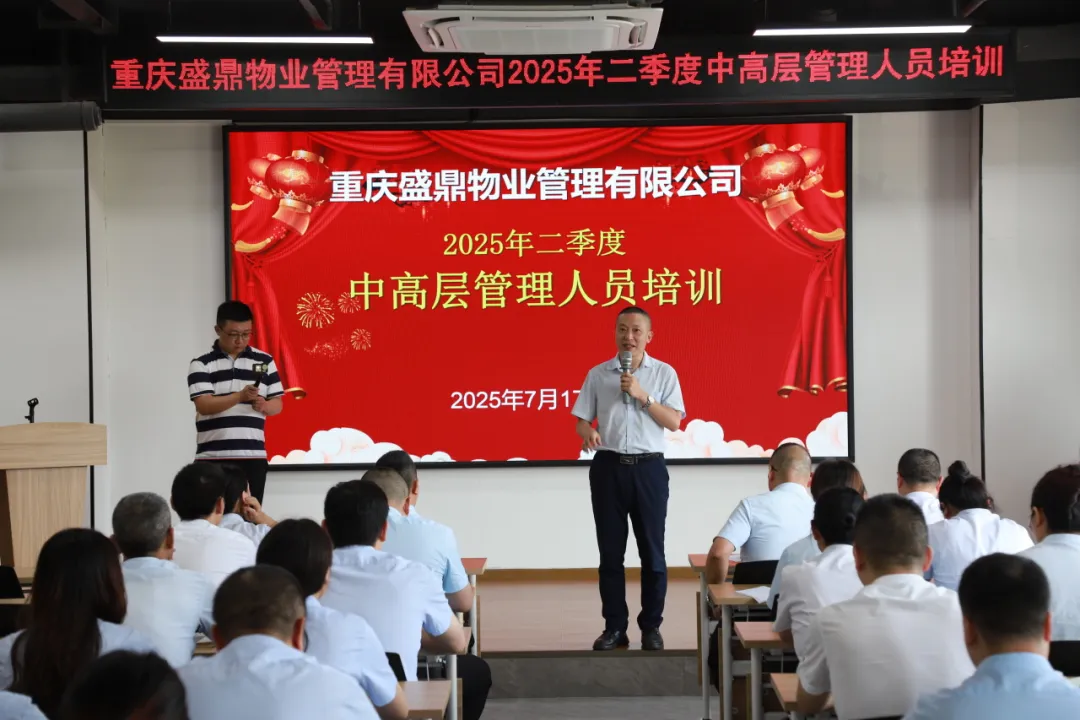 2025-07-25 1102025年7月17日至18日,重庆盛鼎物业管理有限公司二季度中高层管理人员培训在酷暑中顺利举办。本次培训以线上线下相结合的方式开展,线上为主、线下为辅。达州区域项目管理人员齐聚实训基地,其他地区学员通过钉钉平台同步线上参训,全体人员以饱满热情投入学习,在两天培训中实现专业进阶与团队凝聚。本次培训紧扣行业趋势与企业需求,围绕几大核心板块展开:专业知识测试以考促学,曹贵方牵头的晨起测试与后续试卷讲解,...